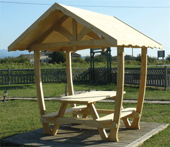- En pin sylvestre, traité autoclave, lames de 145 x 45 mm d‘épaisseur, livrée en kit